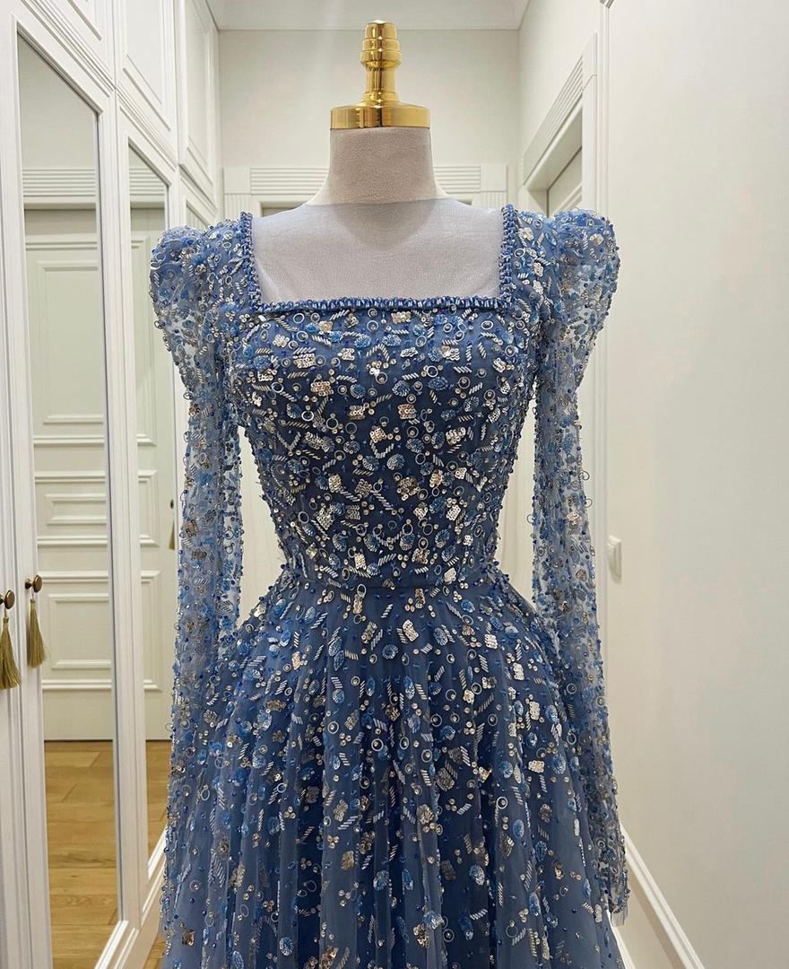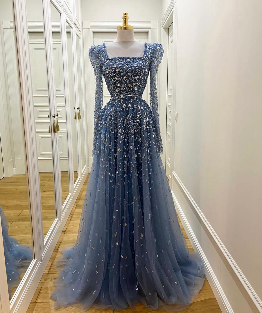 فستان سهره هاند ميد فل تطريز مصنوع من خامة التول مشكوك بأرقي انواغ الخرز والسواروفسكي كريستال