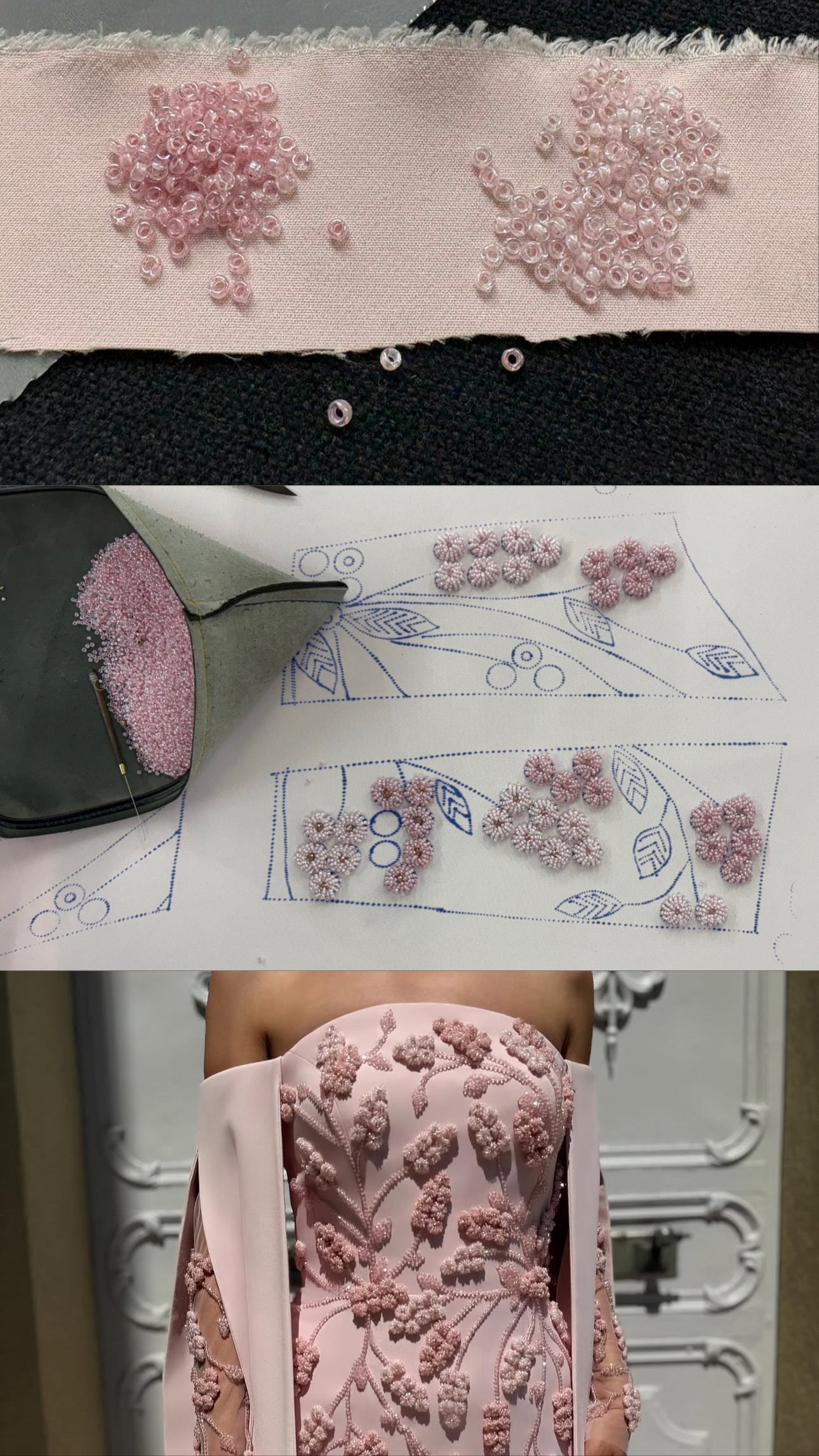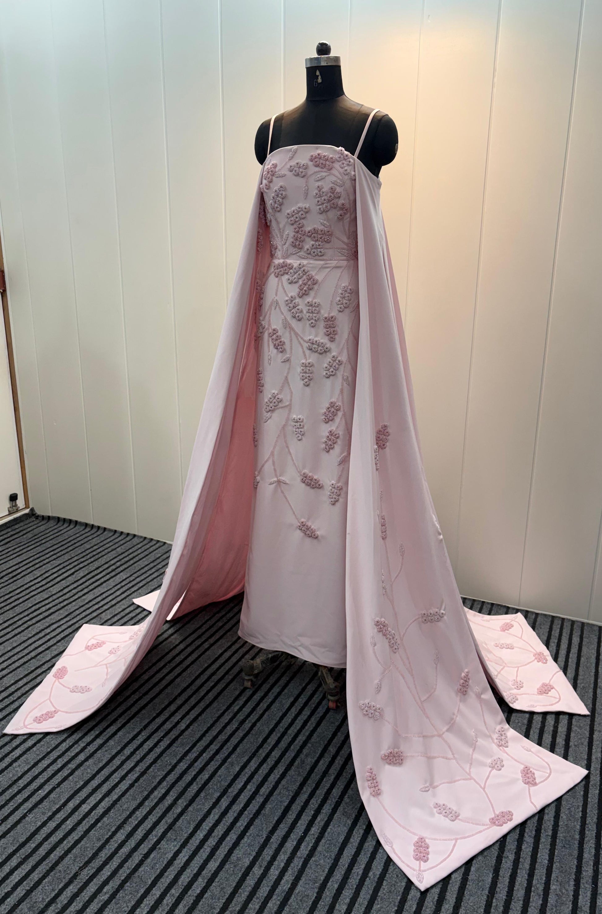 a feminine and elegant design that radiates grace and sophistication. Crafted from luxurious blush-pink fabric, delicately hand-embroidered with shimmering beads and crystals. The flowing silhouette beautifully enhances your figure, offering a dreamy, refined look perfect for engagements, evening events, or special occasions. ✨