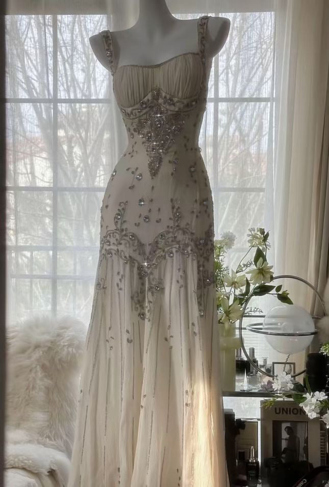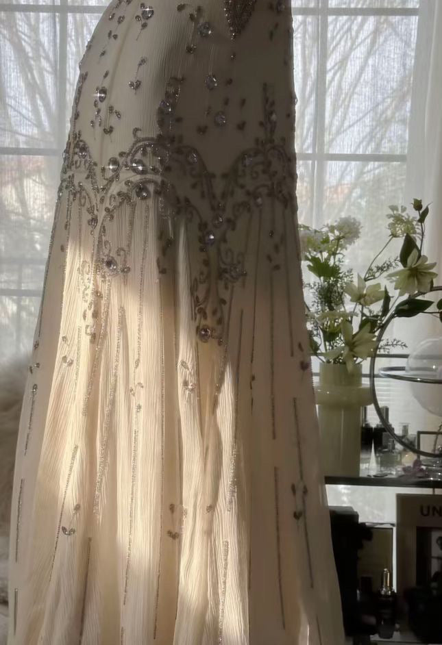 A stunning dress in soft, elegant white, exuding both grace and sophistication. Delicate, intricate embroidery adorns the entire gown in perfect harmony, adding a refined touch without being overwhelming. The dress features a regal sweetheart neckline, fit for a princess, enhancing its feminine and dreamy appeal—an ideal choice for those seeking elegance and timeless beauty.