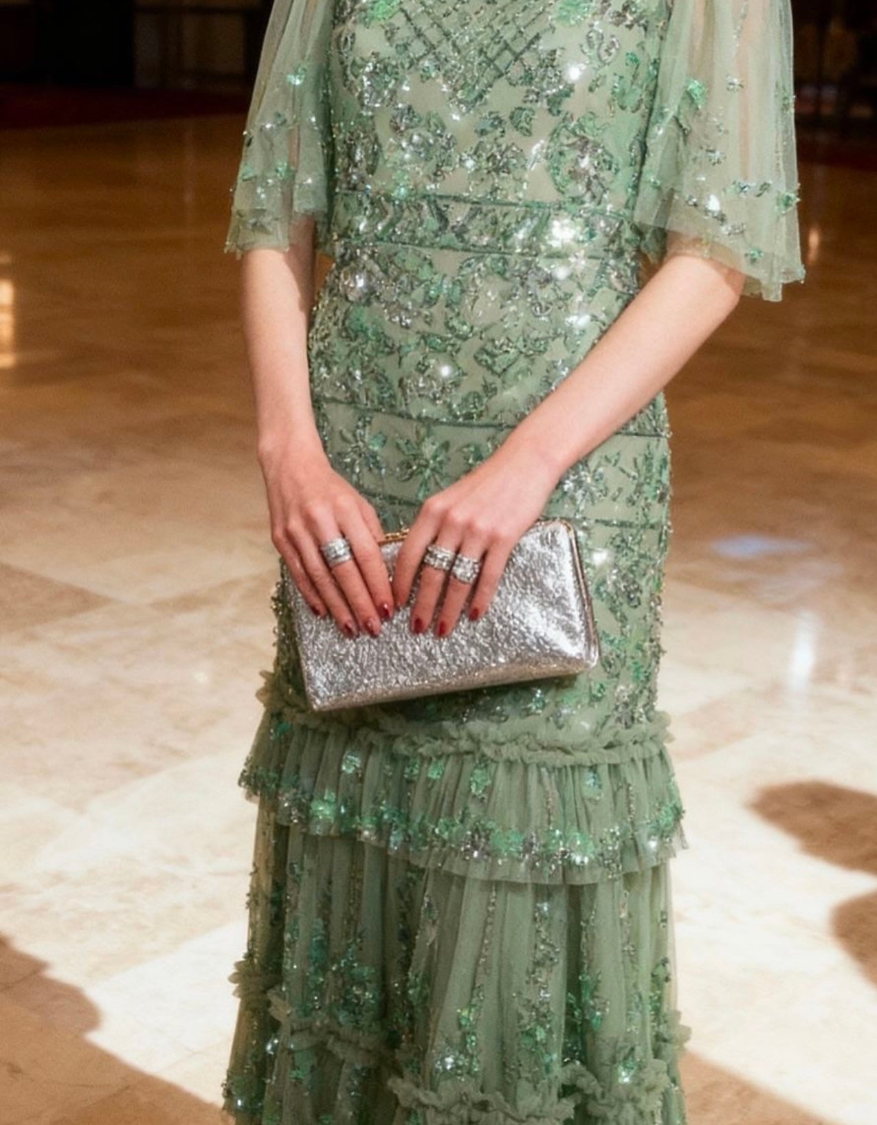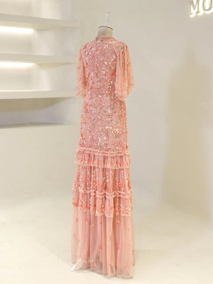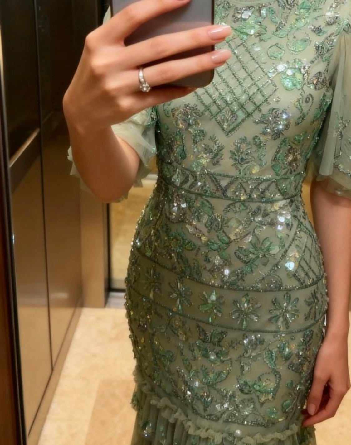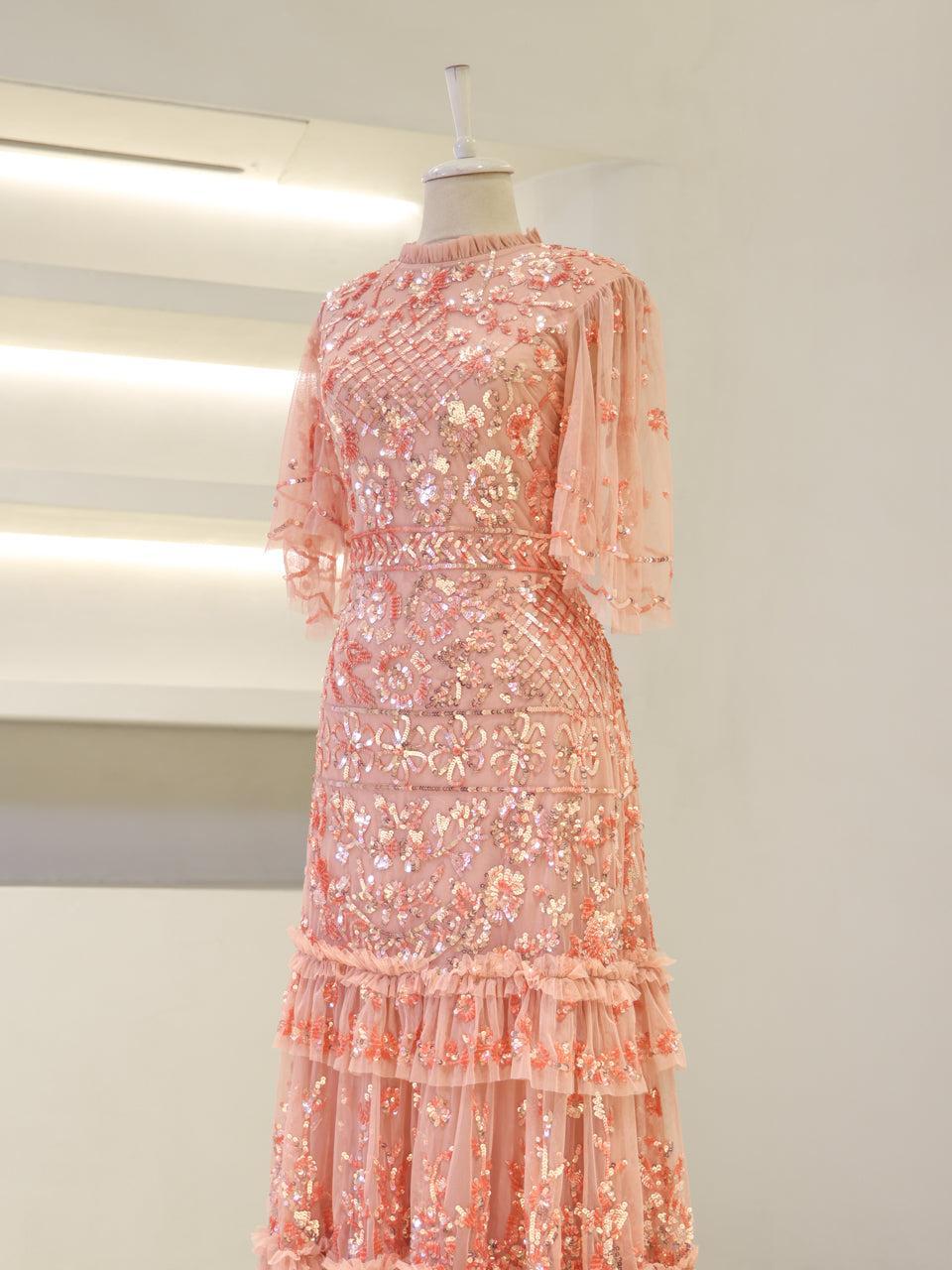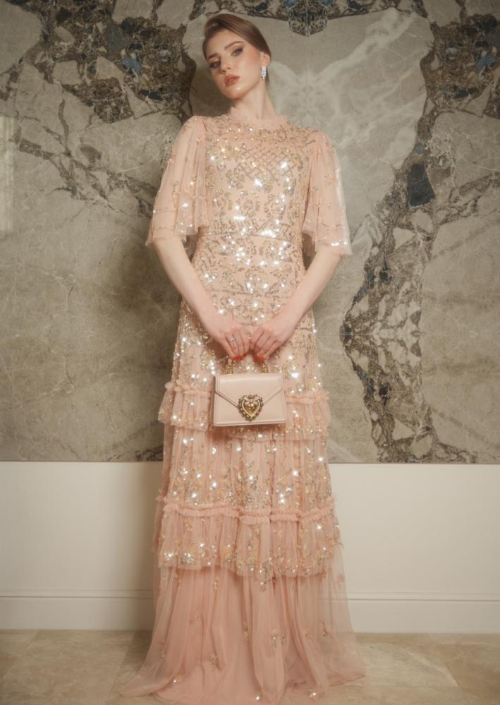 A long, elegant, and modest dress that radiates grace and sophistication. Made from luxurious fabric that drapes beautifully, it’s adorned with delicate embroidery all over, adding a refined touch of sparkle. The sleeves feature a soft, feminine design that complements the dress in perfect harmony, creating a stunning and graceful look for any special occasion.