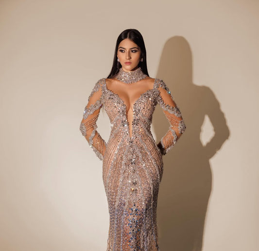 Emerald Whisper Hand-Beaded Gown