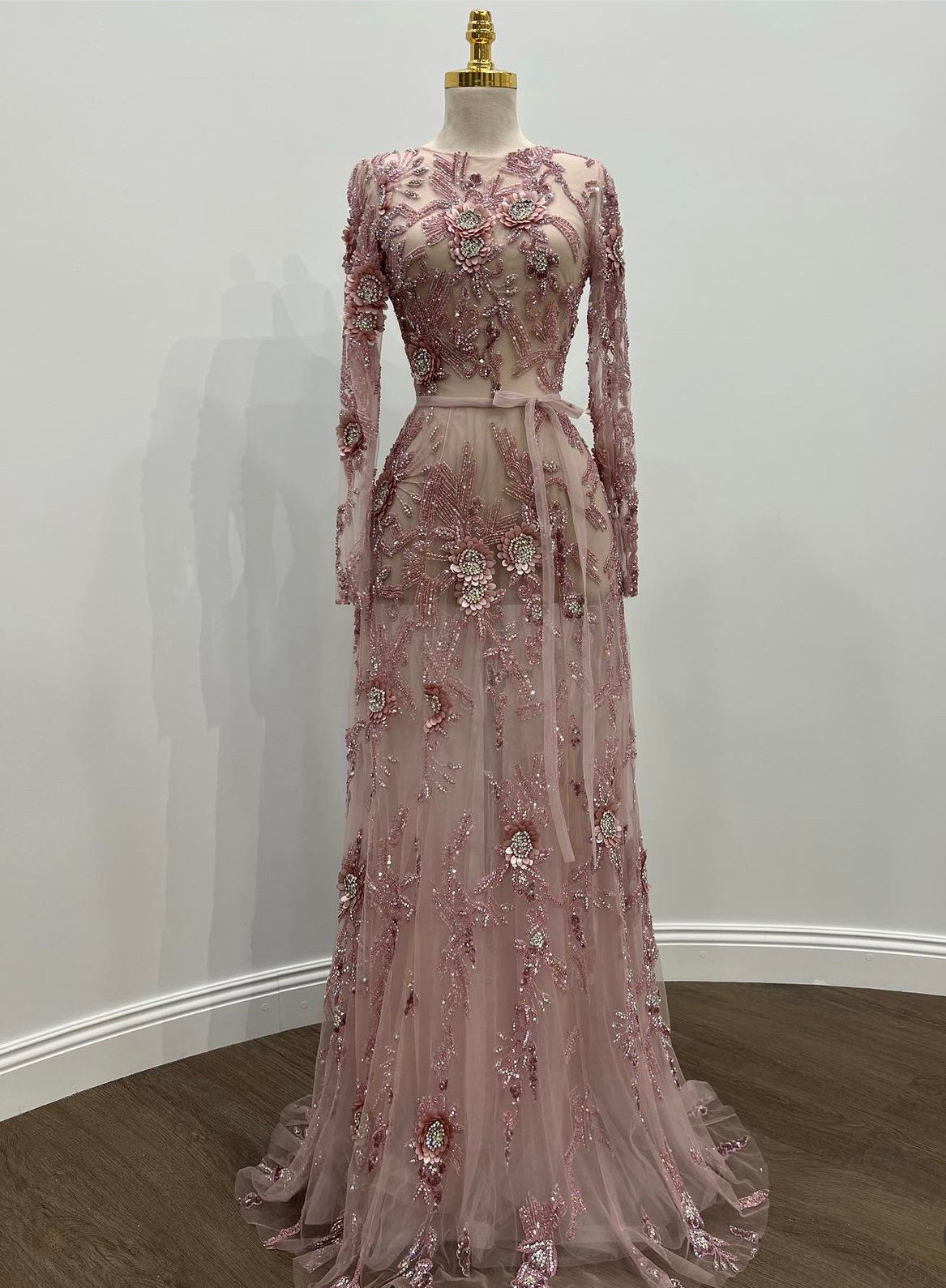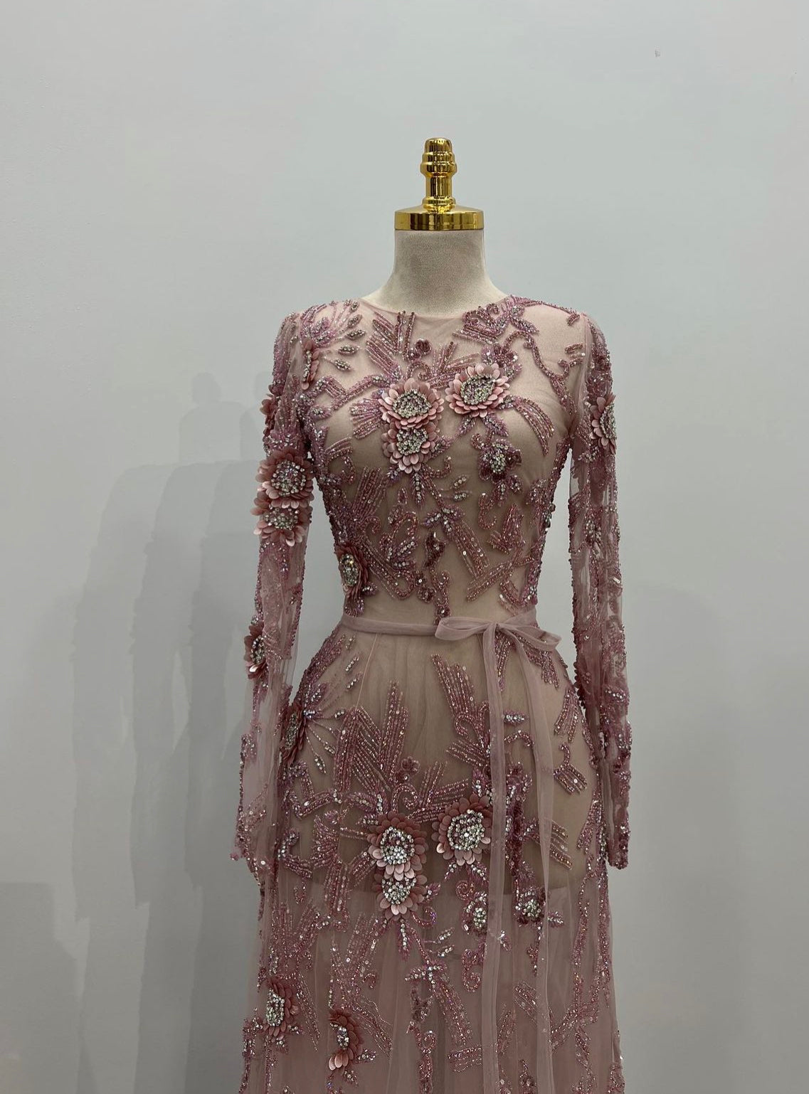 A custom-made dress from tulle, hand-embroidered with beads and crystals
