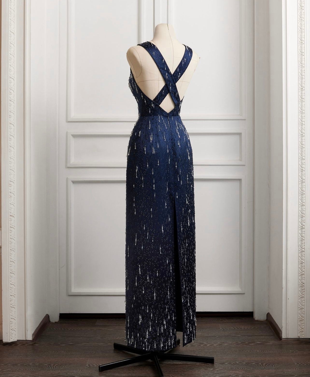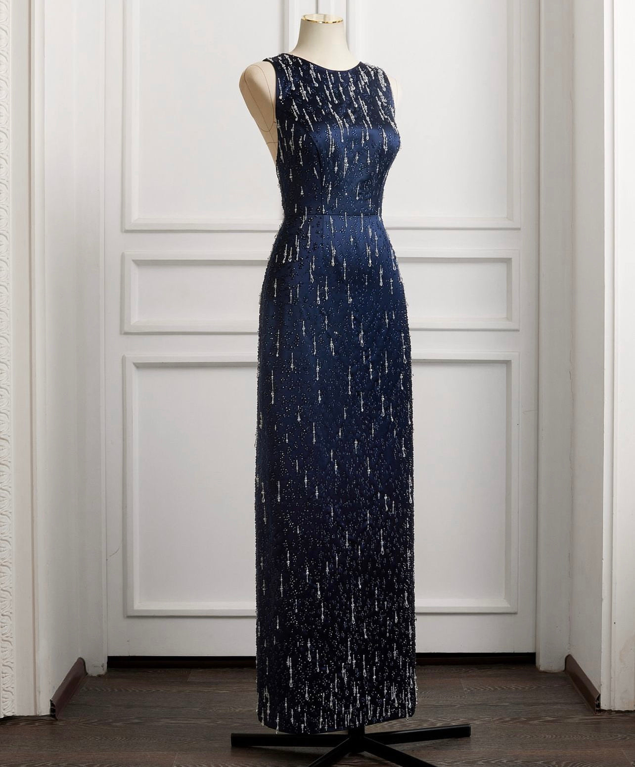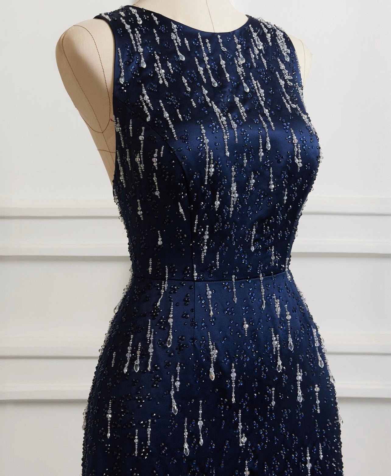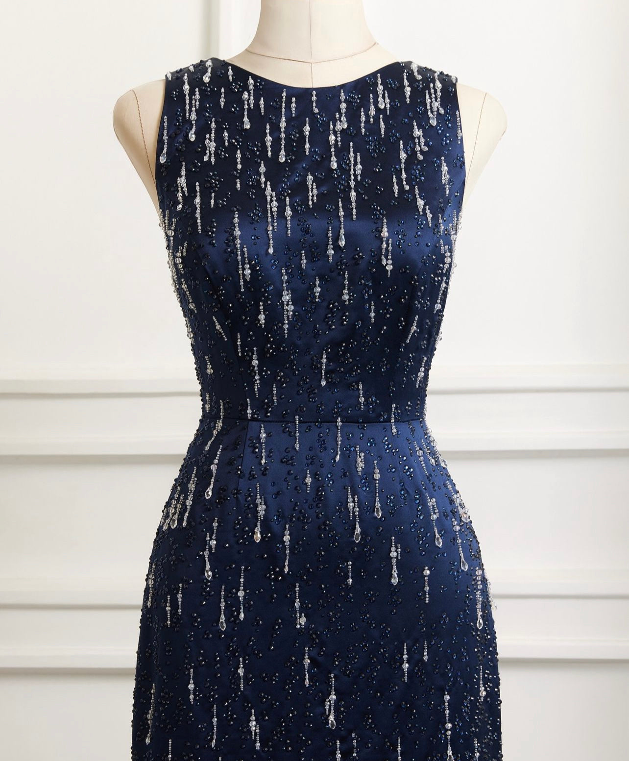 Silk satin dress embellished with a shinny crystals handmade embroidered ( drops)