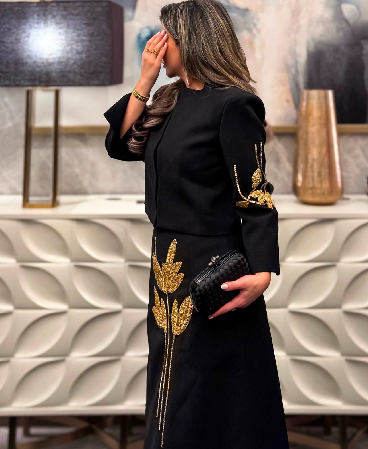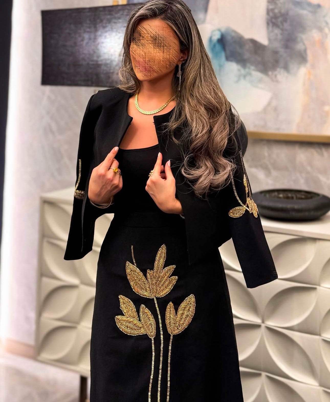 The Golden Embroidered Crepe Jacket Dress