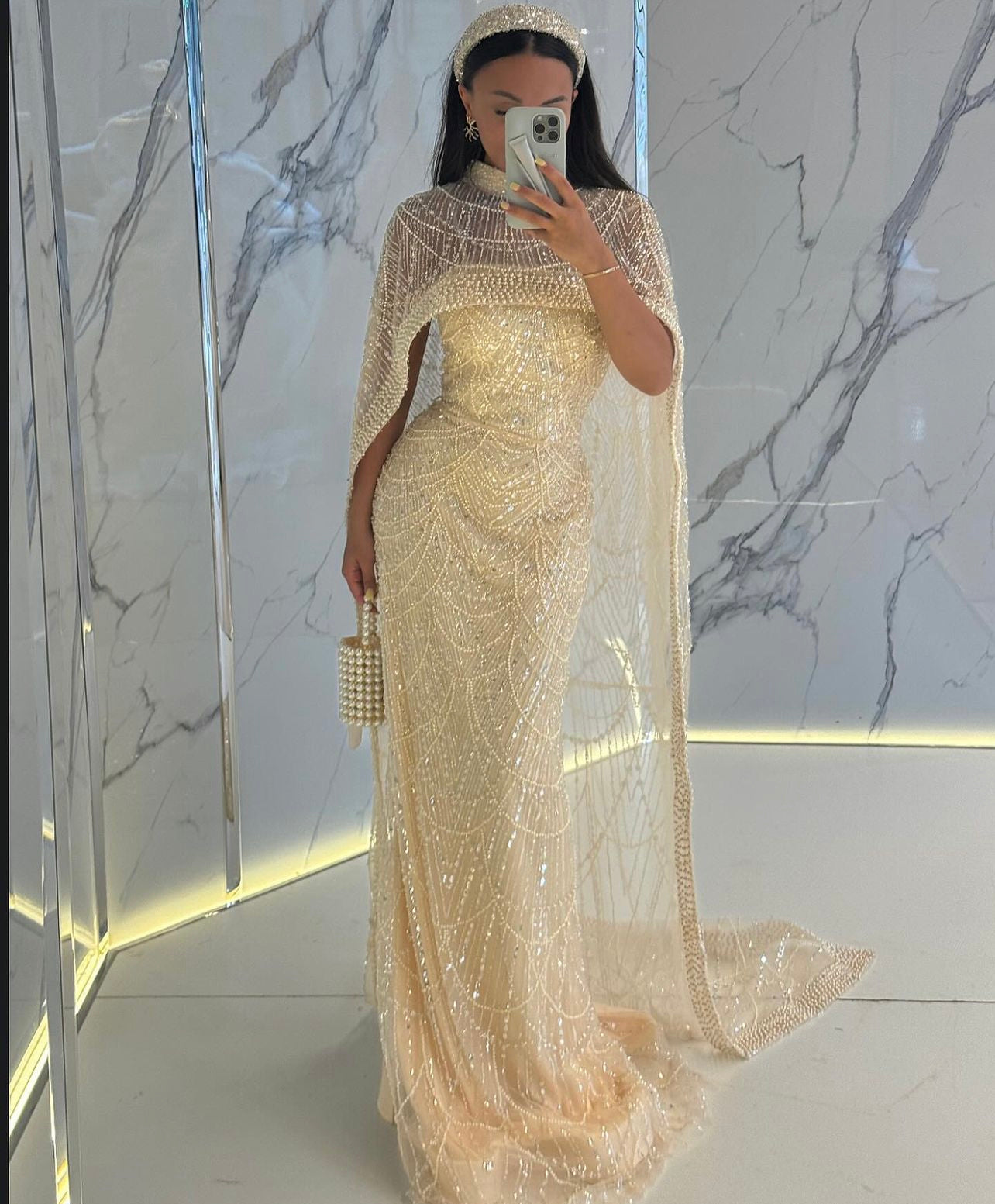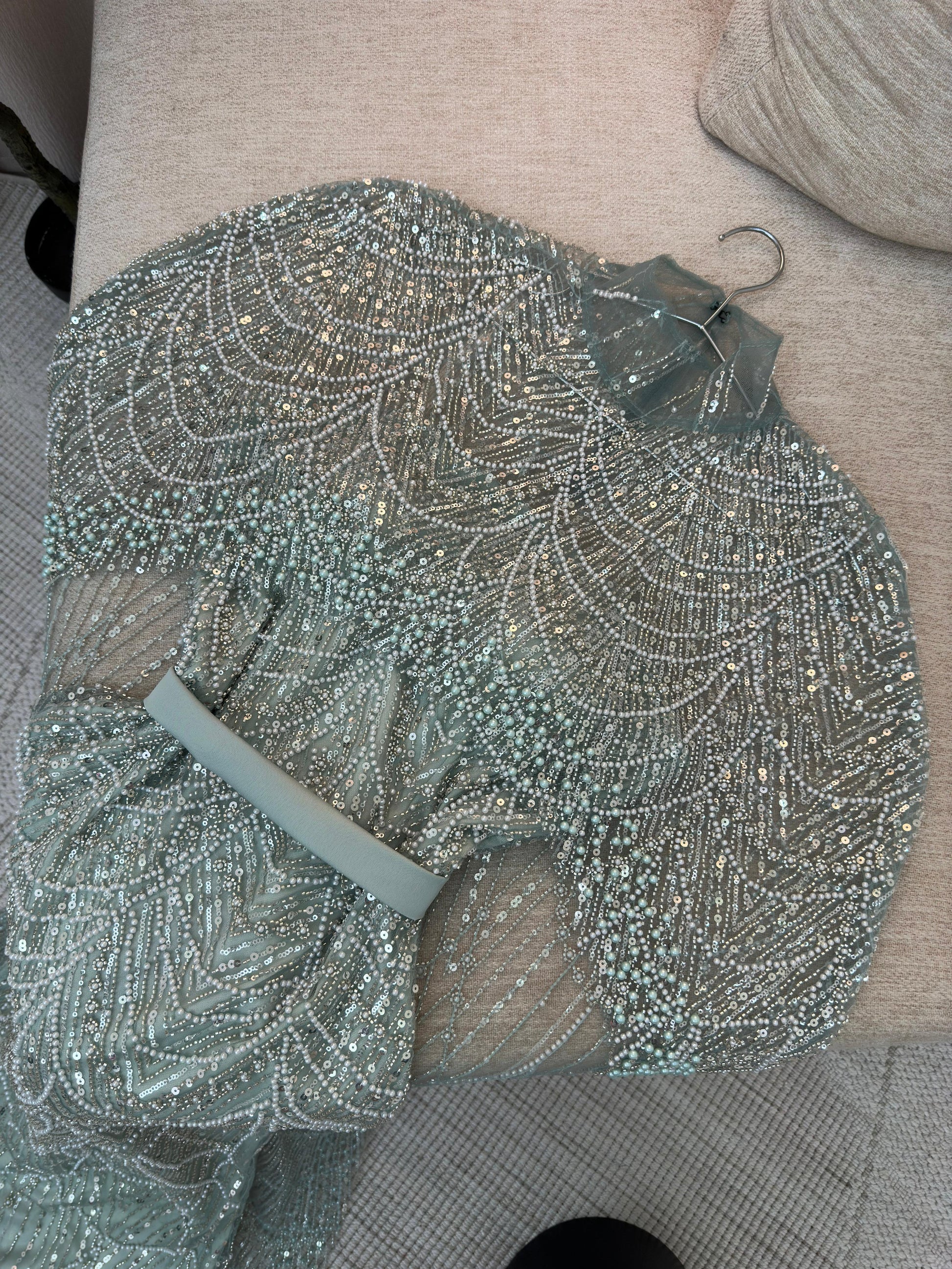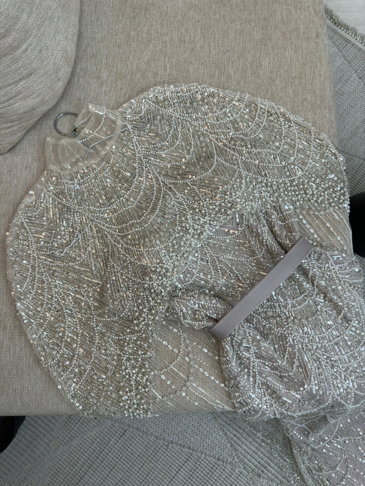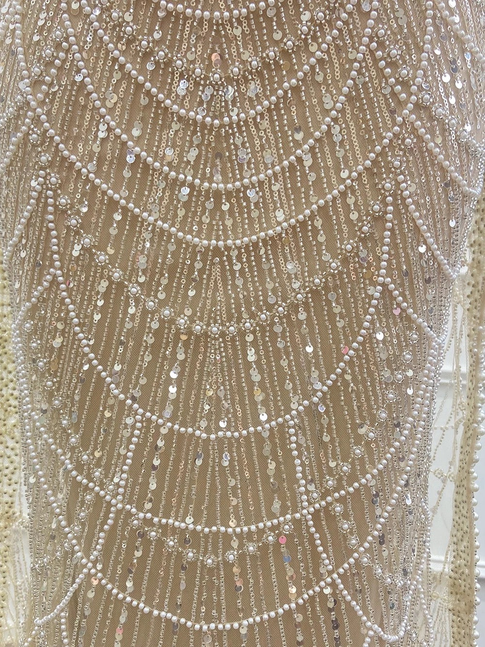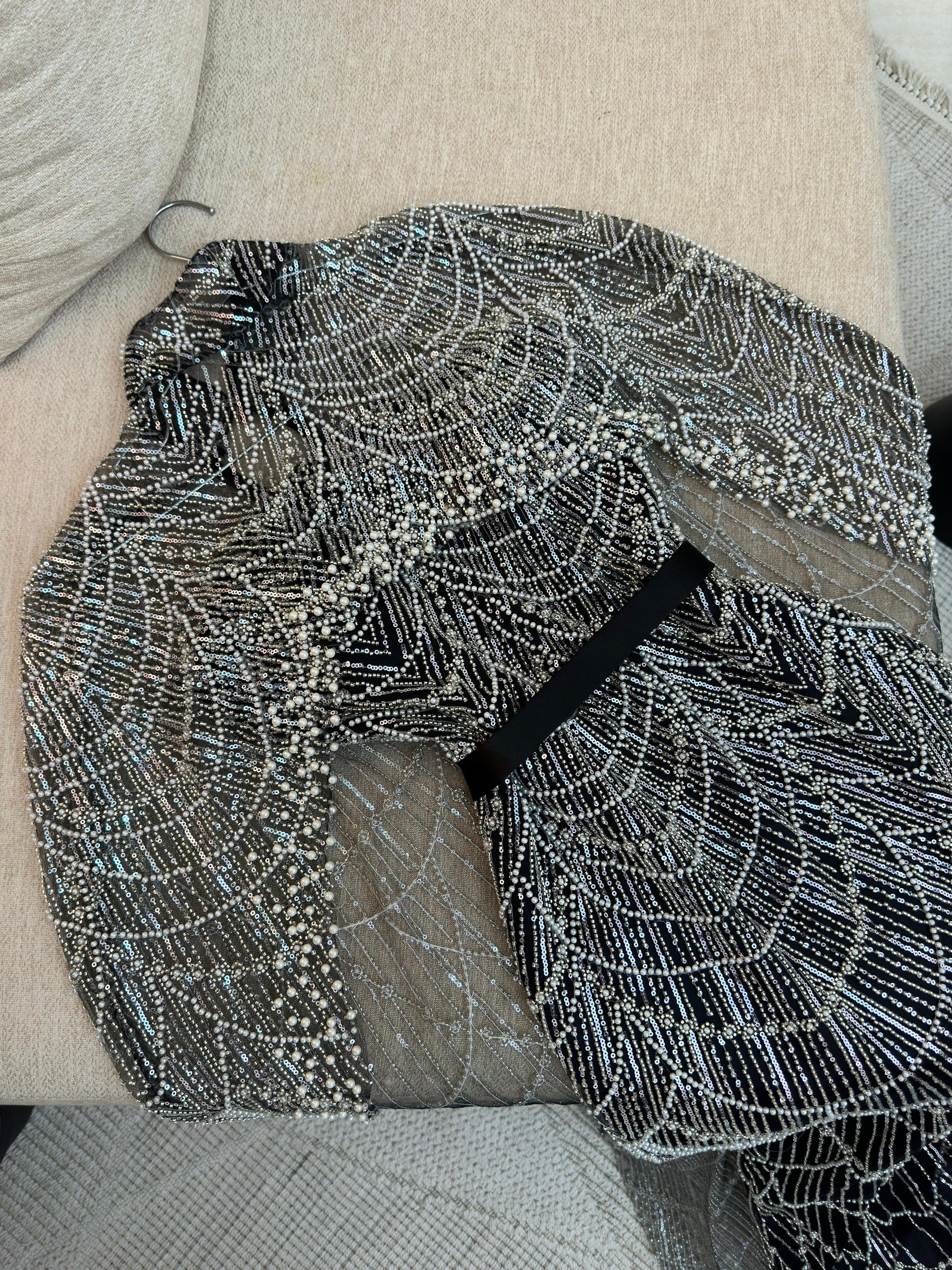 Ready-to-wear dress made of tulle material, embroidered with pearls