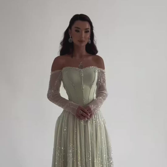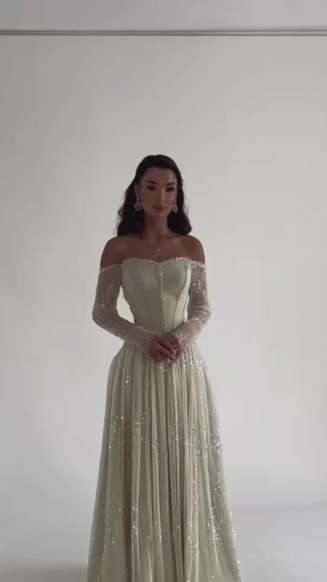 Delicate hand-beading adds a subtle sparkle, while the skirt flows gracefully for an elegant and refined look—perfect for any special occasion.