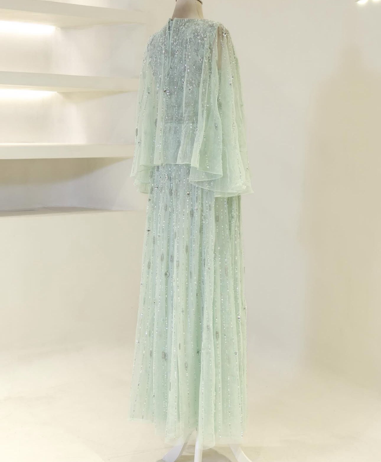 A beautifully hand-embroidered piece in elegant tiffany blue and grey, designed to blend sophistication with subtle sparkle.